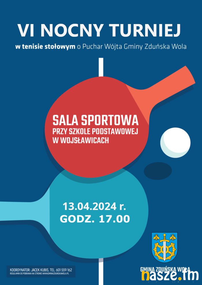 Dzisiaj w hali Szkoły Podstawowej w Wojsławicach odbędzie się VI Nocny Turniej w tenisie stołowym o Puchar Wójta Gminy Zduńska Wola. Zawody rozpoczną się o godzinie 17:00.