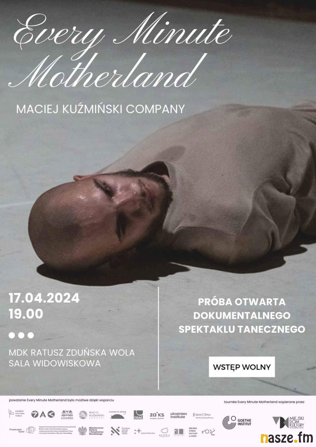 Próba otwarta spektaklu tanecznego "Every Minute Motherland" to wydarzenia organizowane w Miejskim Domu Kultury Ratusz w Zduńskiej Woli w środę, 17 kwietnia, o godz. 19:00. Wstęp do sali widowiskowej jest wolny.