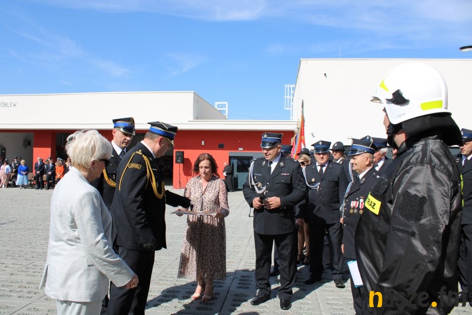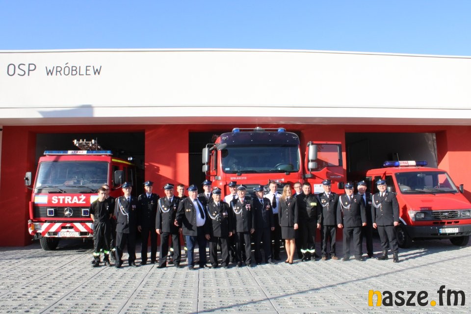 Po mszy uczestnicy obchodów udali się na plac przed jednostką Ochotniczej Straży Pożarnej we Wróblewie, gdzie miała miejsce część oficjalna. Wszystkich przybyłych powitał prezes ZOG ZOSP RP we Wróblewie druh Sylwester Tomczyk oraz wójt gminy Wróblew Tomasz Woźniak. Następnie ks. proboszcz dokonał poświęcenia nowo wybudowanej strażnicy.