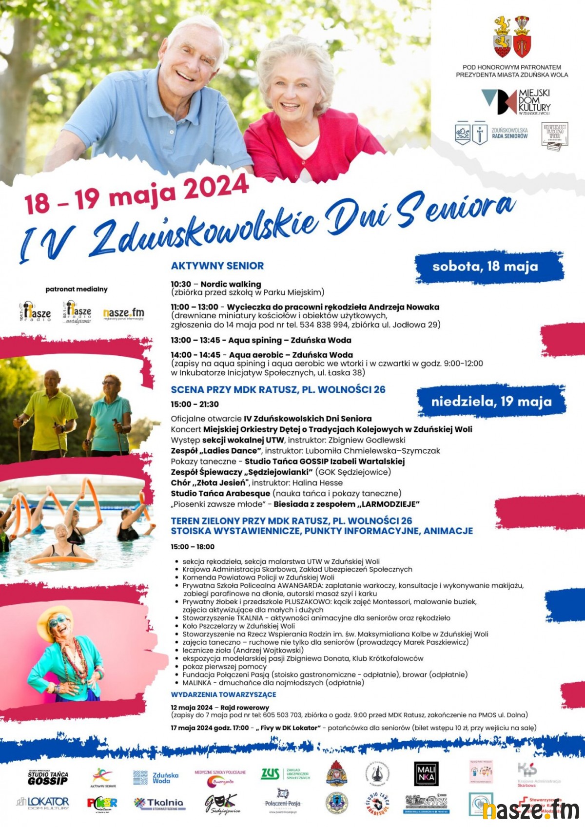 Zduńskowolskie Dni Seniora rozpoczęły się 18 maja (sobota) od aktywności sportowych. Były zajęcia nordic walking, aqua spining, aqua aerobic i wycieczka do pracowni rękodzieła Andrzeja Nowaka.