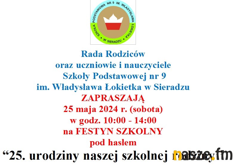 Społeczność szkolna SP nr 9 w Sieradzu zaprasza w najbliższą sobotę na Festyn Szkolny pod hasłem "25. urodziny naszej szkolnej rodziny". W programie wiele atrakcji dla starszych i młodszych. Będzie to też idealna okazja do spotkania i wspólnej zabawy dla absolwentów szkoły.