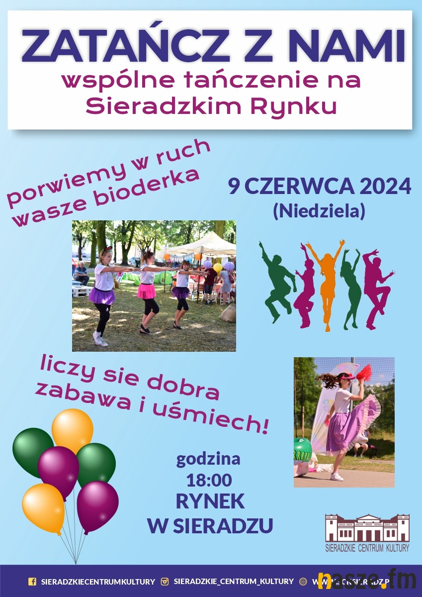 Na niedzielę w Sieradzu, również na Rynku zaplanowano pokazy tańca. Między godz. 18:00 a 19:00 będzie okazja, żeby wspólnie potańczyć.