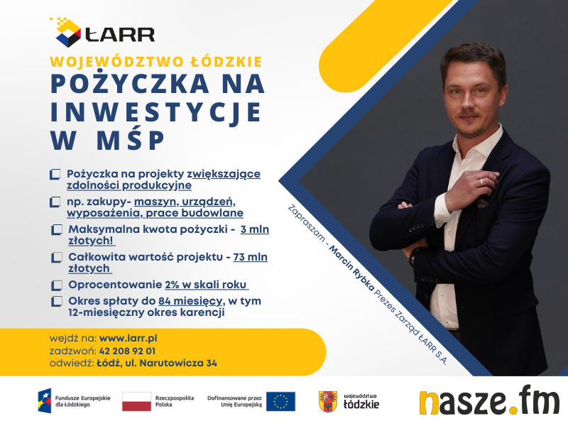 Dzięki atrakcyjnemu oprocentowaniu 2% w skali roku oraz maksymalnej kwocie pożyczki aż do 3 mln zł macie Państwo realną szansę rozwinąć swój biznes - do czego serdecznie zachęcam - mówi Marcin Rybka Prezes Zarządu ŁARR S.A.