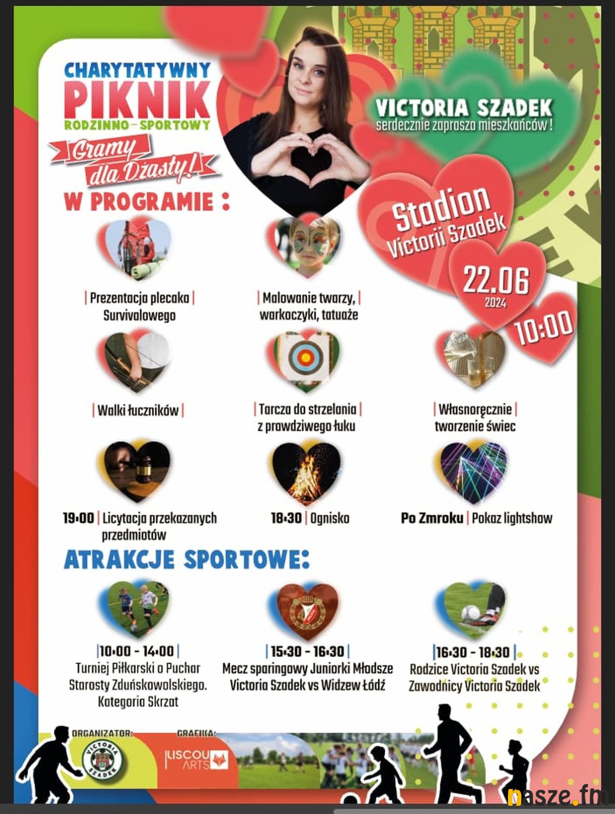 Zarząd LKS Victoria Szadek zaprasza w najbliższą sobotę, 22 czerwca, na Piknik Charytatywny o charakterze rodzinno-sportowym. Wydarzenie, które odbędzie się na stadionie w Szadku ma na celu integrację lokalnej społeczności oraz pomoc w leczeniu Justyny Glapińskiej, mieszkanki Szadku.