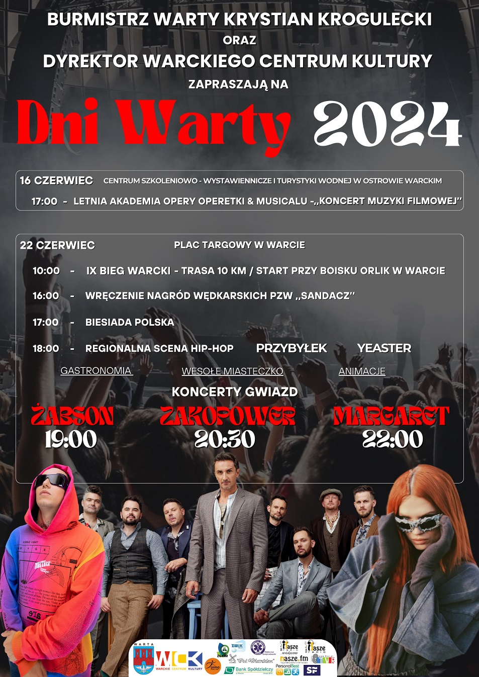 Żabson, Zakopower i Margaret uświetnią swoimi koncertami tegoroczne święto tego miasta. Na scenie zobaczymy też gwiazdy z naszego regionu. Nie zabraknie atrakcji dla całych rodzin. Wszystko odbywać się będzie dziś na Placu Targowym w Warcie.