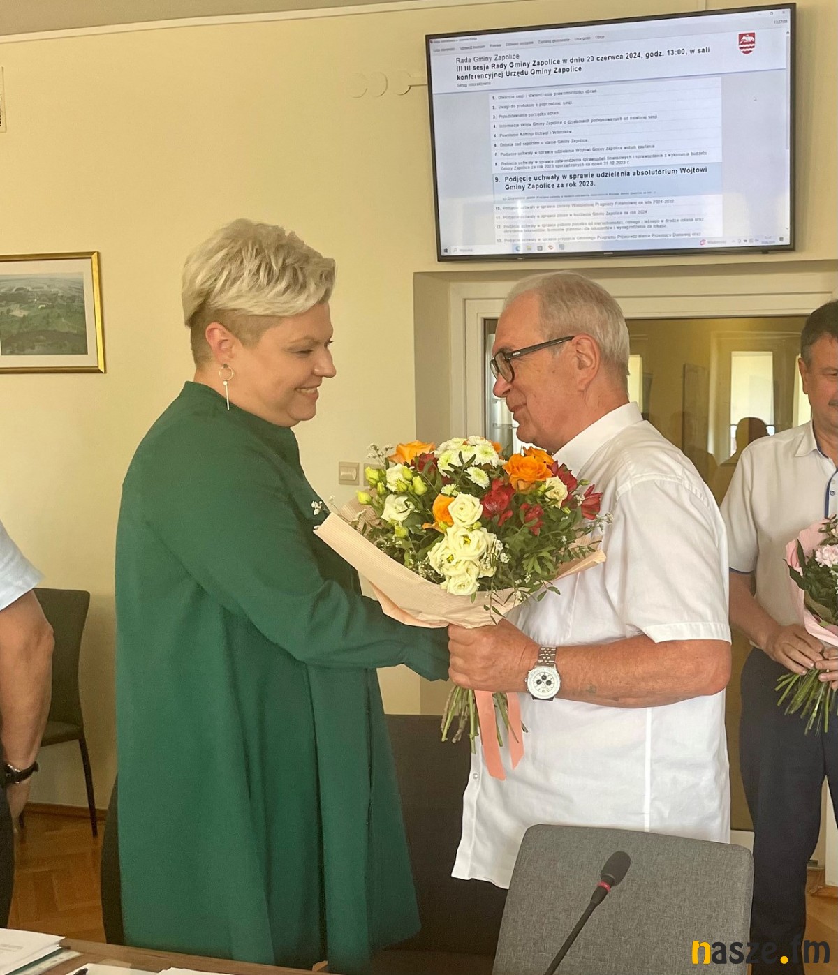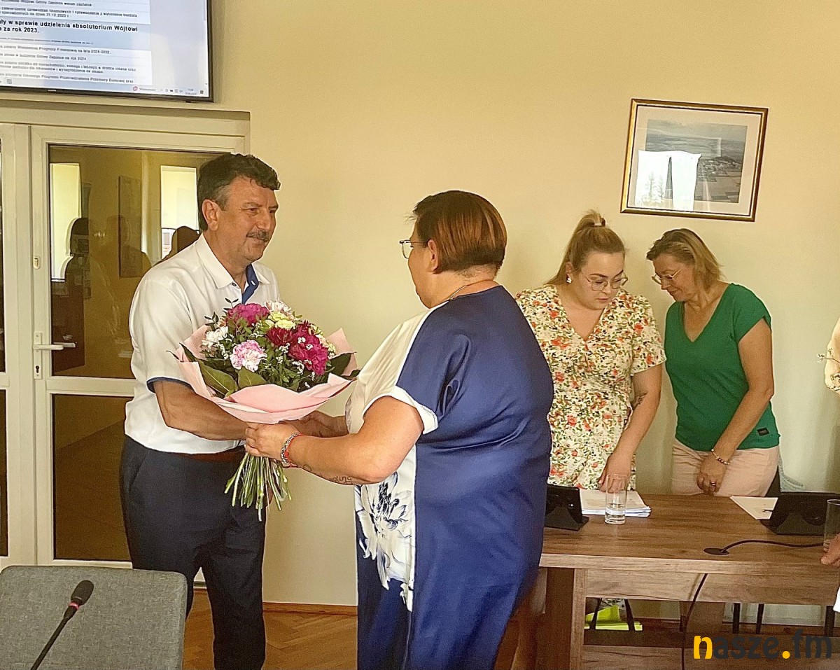 Tuż po głosowaniu, przewodnicząca rady Małgorzata Bartosz oraz wiceprzewodniczący Jerzy Piętka złożyli gratulacje Witoldowi Oleszczykowi oraz skarbnikowi gminy Monice Wołynkiewicz.