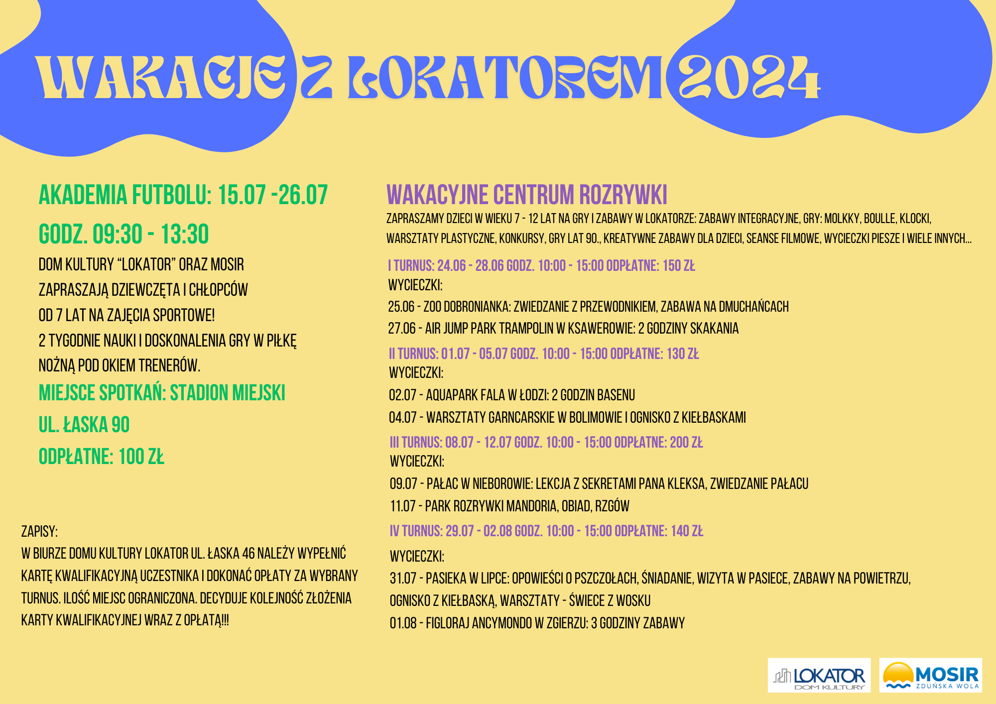 Oferta "Wakacji z Lokatorem" skierowana jest dla dzieci w wieku 7-13 lat, których rodzice/ dziadkowie zamieszkują zasoby Spółdzielni Mieszkaniowej "Lokator" w Zduńskiej Woli.