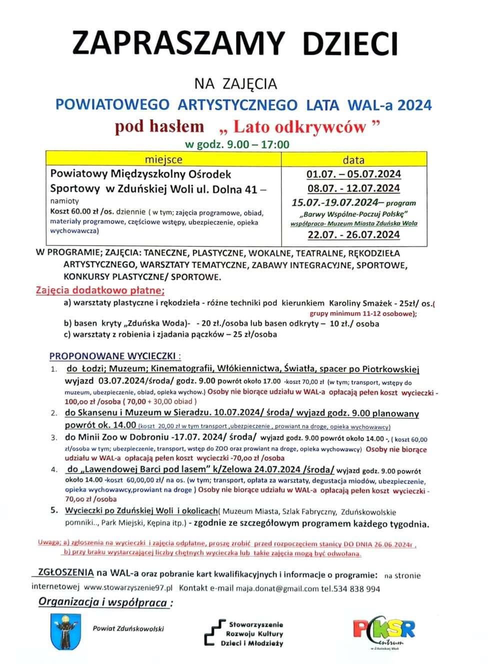 Zapisy i informacje w Biurze SDK, tel: 43 827 16 20