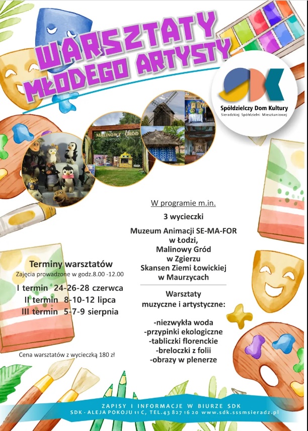 Spółdzielczy Dom Kultury w Sieradzu zaprasza na Warsztaty Młodego Artysty.