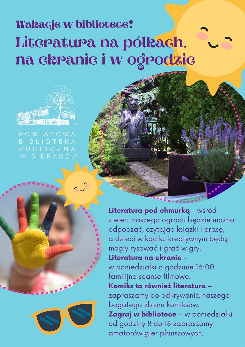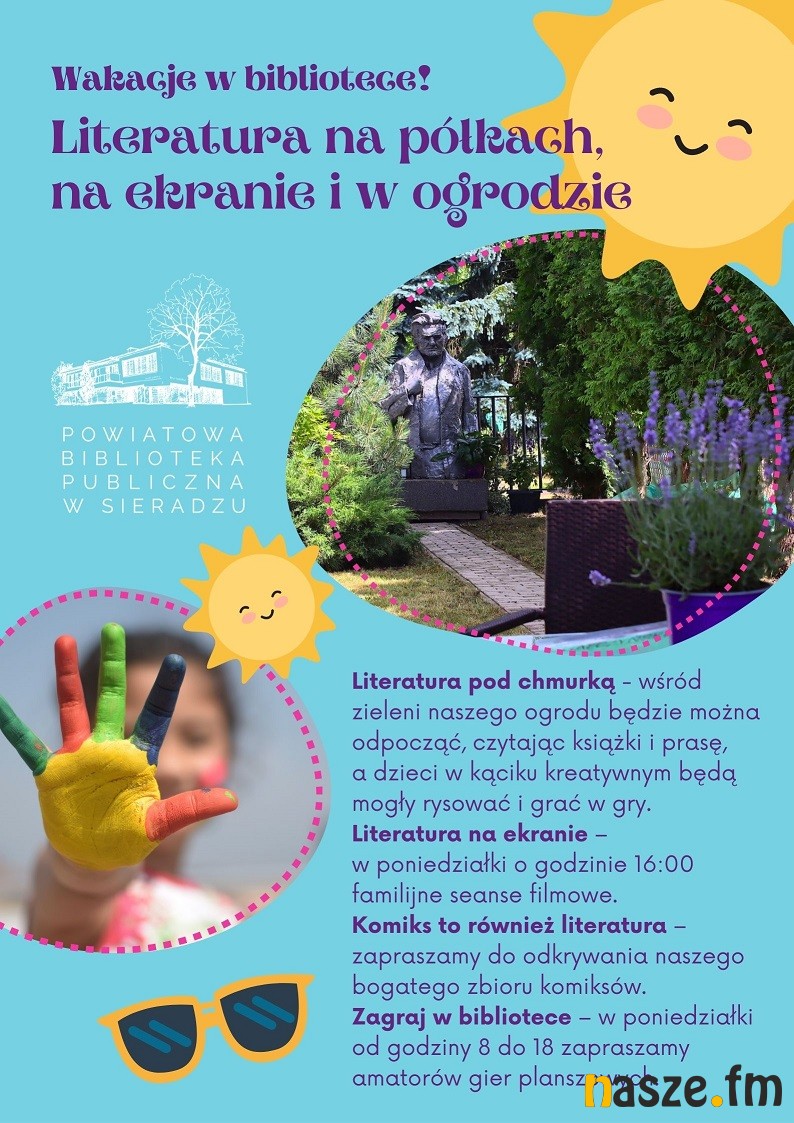 Wakacje w bibliotece - Literatura na pólkach, na ekranie i w ogrodzieLiteratura pod chmurką - Powiatowa Biblioteka Publiczna w Sieradzu otwiera na czas wakacji swój ogród. Będzie można wśród zieleni odpocząć, czytać książki i prasę. Dzieci też nie będą się nudziły –