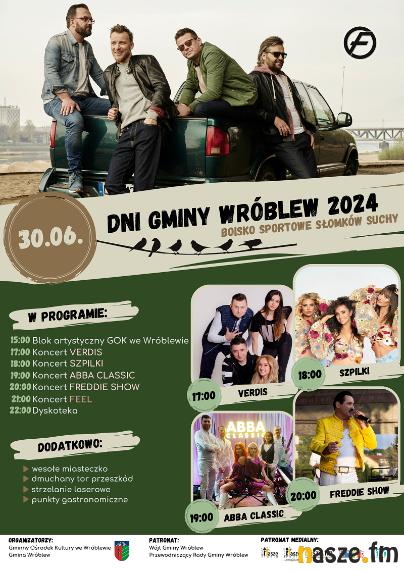 Tuż po nich, ze sceny wybrzmi muzyka disco polo, a to wszystko za sprawą zespołów: VERDIS (godz. 17:00) i SZPILKI (godz. 18:00).