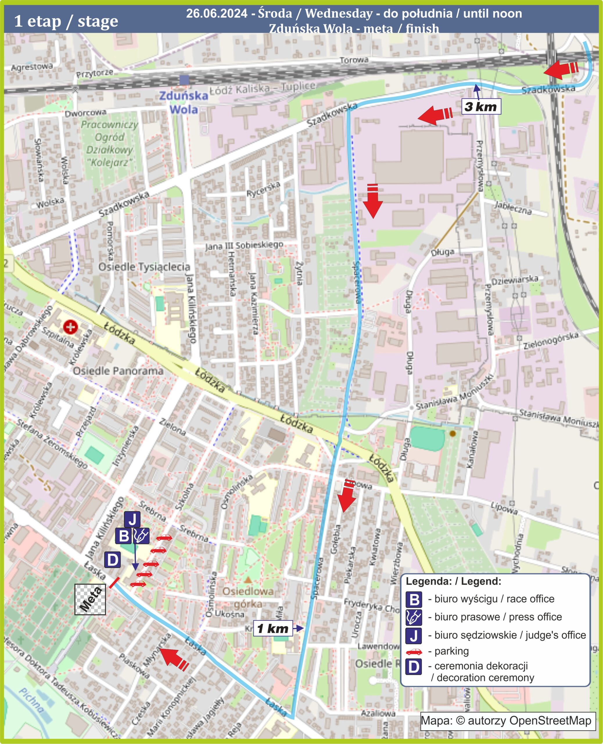 Ruch pojazdów będzie zatrzymywany na czas przejazdu peletonu. Trasę wyścigu znajdziecie na mapkach poniżej: