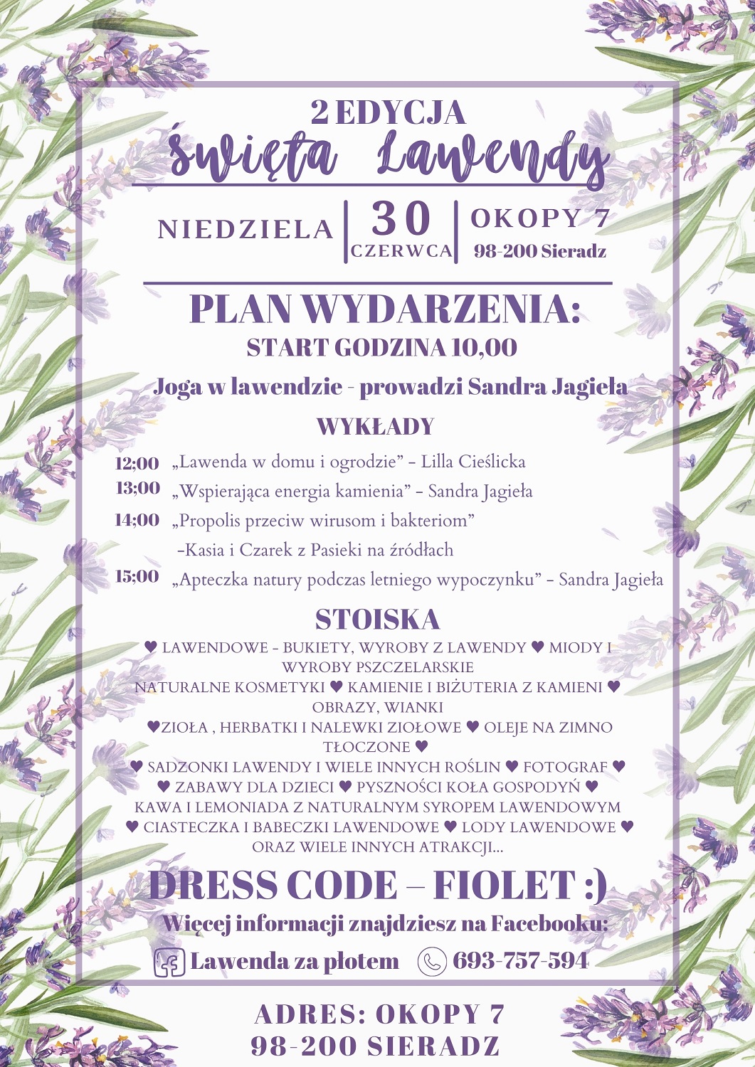 - godz. 10:00 - rozpoczęcie wydarzenia - Joga w lawendzie - zajęcia prowadzi Sandra Jagieła