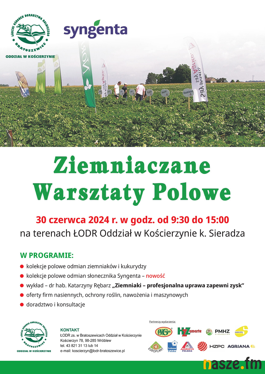 Łódzki Ośrodek Doradztwa Rolniczego w Bratoszewicach zaprasza do swego oddziału w Kościerzynie (gm. Wróblew) na Warsztaty Polowe. Wydarzenie jest adresowane nie tylko do rolników.