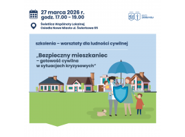 Specjalne szkolenie dla mieszkańców Zduńskiej Woli "Bezpieczny mieszkaniec - gotowość cywilna w sytuacjach kryzysowych" zostanie przeprowadzone w piątek, 27 marca 2026 roku. Spotkanie odbędzie się w świetlicy osiedlowej przy ul. Świerkowe