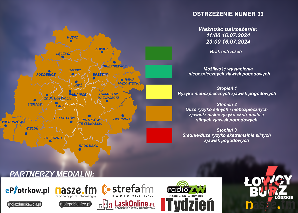 Ostrzeżenie numer 33 wydane przez Łowców Burz Łódzkie: