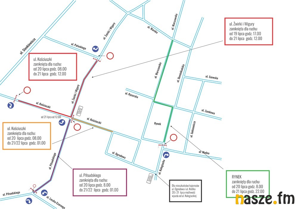 - ul. Rynek od 20 lipca godz. 8.00 do 21 lipca godz. 22.00;