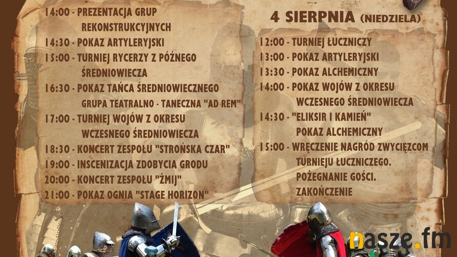 Jednym z głównych punktów festiwalu będą turnieje, w których rycerze i wojowie zmierzą się w szrankach, demonstrując swoje mistrzowskie umiejętności w walce na miecze i kopie. Dla wielu gości sobotni wieczór będzie kulminacją emocji - inscenizacja zdobycia grodu to widowisko, które co roku przyciąga tłumy i zapiera dech w piersiach. Spektakl ten, pełen dramatyzmu i dynamicznych scen, przeniesie nas w sam środek średniowiecznej bitwy.