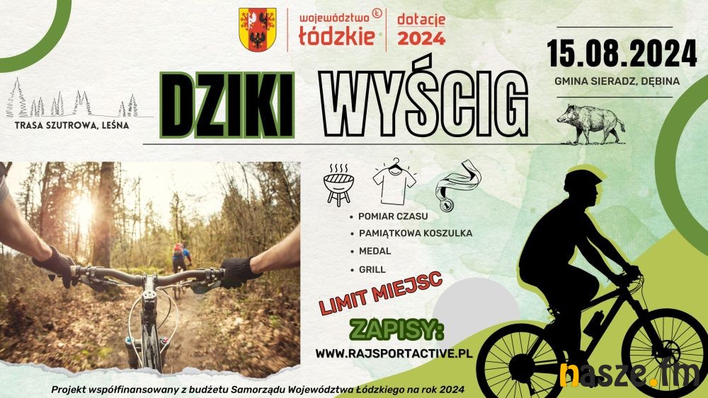 15 sierpnia na terenie Dębiny (Gmina Sieradz) wystartuje rowerowy "Dziki Wyścig" organizowany w ramach realizacji programu Województwa Łódzkiego "Rowerowe Łódzkie na PLUS", wiodący malowniczymi, leśnymi terenami.