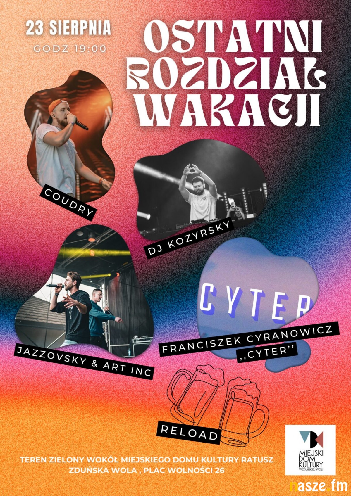 Na letniej scenie muzycznej przy Miejskim Domu Kultury Ratusz zagrają: CYTER (Zduńska Wola), JAZZOVSKY & ART INC (Zduńska Wola), COUDRY & KOZYRSKY (Warszawa, Gdańsk).