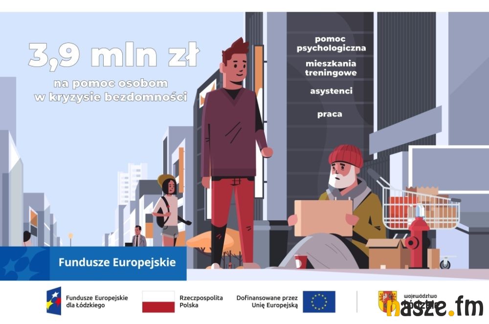 Województwo Łódzkie ma blisko 4 mln zł pieniędzy unijnych dla organizacji zajmujących się osobami w kryzysie bezdomności. Konkurs na pomoc osobom borykającym się z tego typu wykluczeniem został ogłoszony po raz pierwszy. Organizuje go Wojewódzki Urząd Pracy, a mogą do niego przystąpić organizacje, stowarzyszenia, fundacje, które mają doświadczenie w pracy z ludźmi w kryzysie bezdomności, ale też samorządy, kościoły czy pracodawcy. Chodzi o realizację kompleksowych działań mających na celu ich włączenie społeczne.