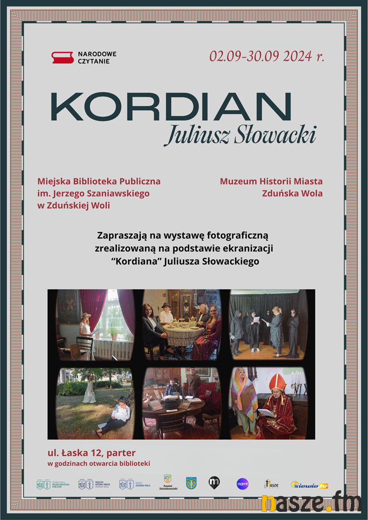 Miejska Biblioteka Publiczna im. Jerzego Szaniawskiego zaprasza do obejrzenia niepowtarzalnej wystawy fotograficznej, będącej zapisem kadrów z ekranizacji Kordiana Juliusza Słowackiego.