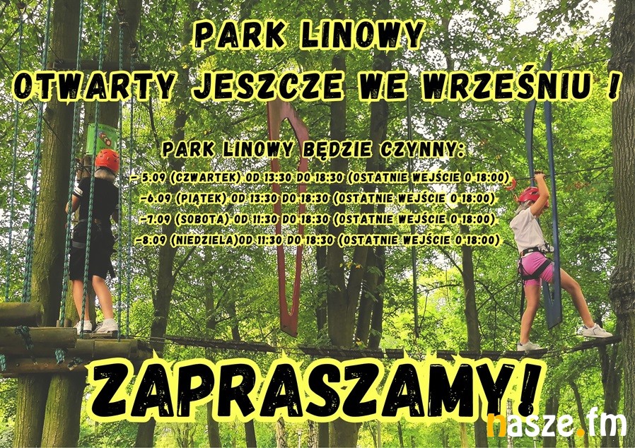 Wakacje się skończyły, ale park linowy w Sieradzu będzie otwarty dodatkowo przez cztery dni we wrześniu. Z atrakcji można korzystać od dziś do najbliższego weekendu włącznie.