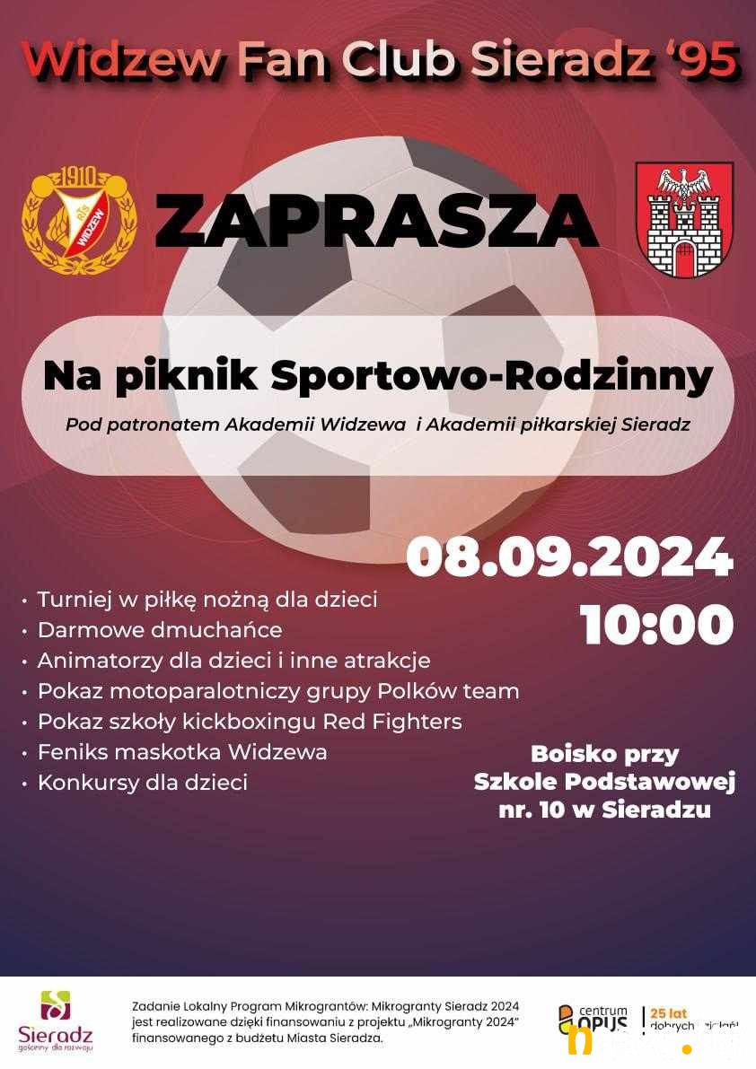 Widzew Fan Club Sieradz ‘95 zaprasza na piknik sportowo-rodzinny, który w niedzielę odbędzie się na boisku Szkoły Podstawowej nr 10 w Sieradzu. Początek wydarzenia o godzinie 10:00.