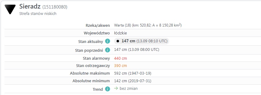 Dziś o poranku poziom wody w rzece Warcie w Sieradzu był jednak niski i wynosił 148 cm, a stan ostrzegawczy to 390 cm.