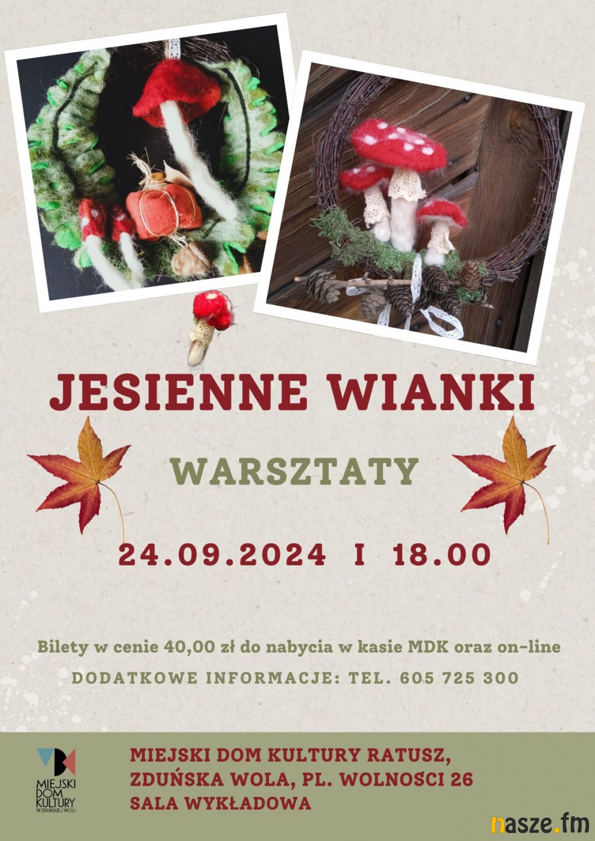 - Połączymy elementy naturalne takie jak drewniane obręcze, chrobotek, kasztany, czapeczki żołędzi z wełną czesankową i stworzymy nietuzinkowe ozdoby, którymi będzie można udekorować wnętrza domów. Przykładowy efekt pracy widać na plakacie i w galerii - mówią organizatorzy warsztatów.