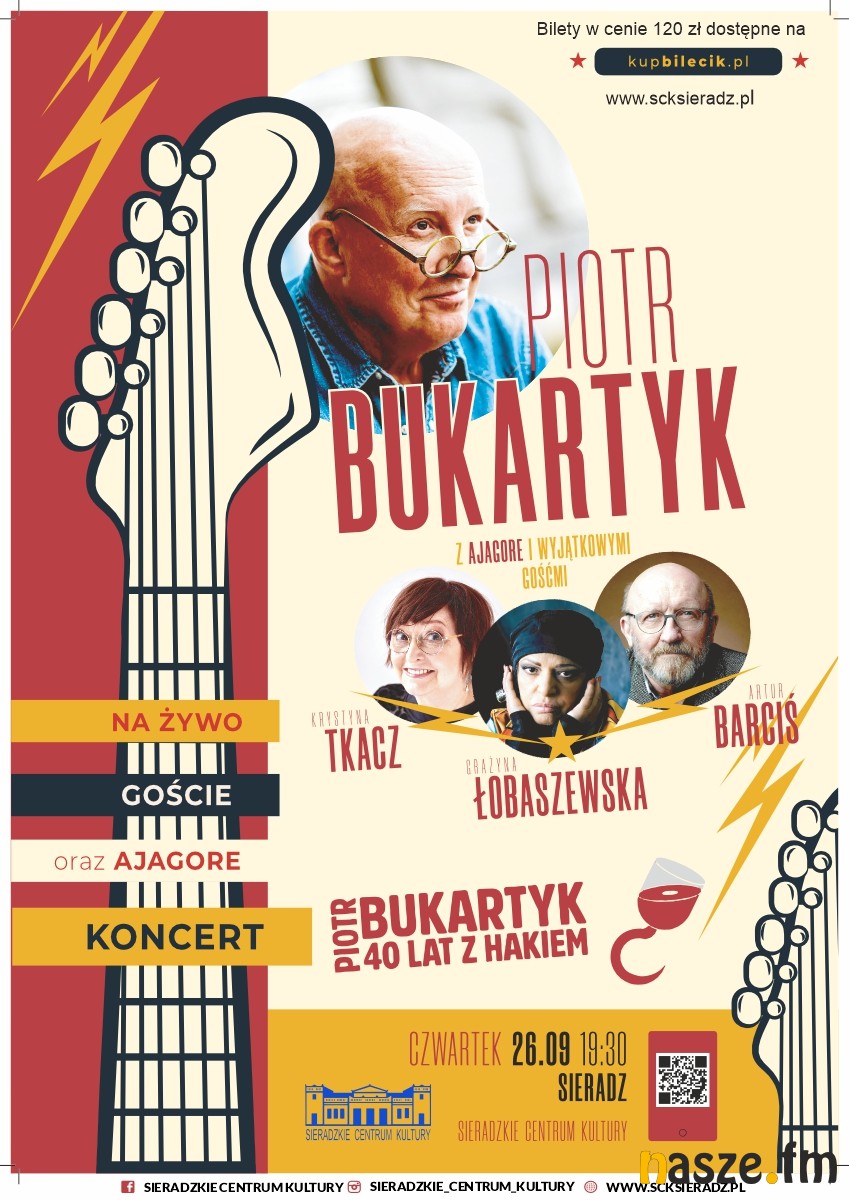 Piotr Bukartyk to w świecie polskiej piosenki postać absolutnie wyjątkowa. Znakomity autor i kompozytor wykonywanych przez siebie piosenek, od lat wymyka się prostym klasyfikacjom, z upodobaniem mieszając muzyczne style. Podczas koncertu "40 lat z hakiem" w Sieradzu na scenie pojawią się też goście.
