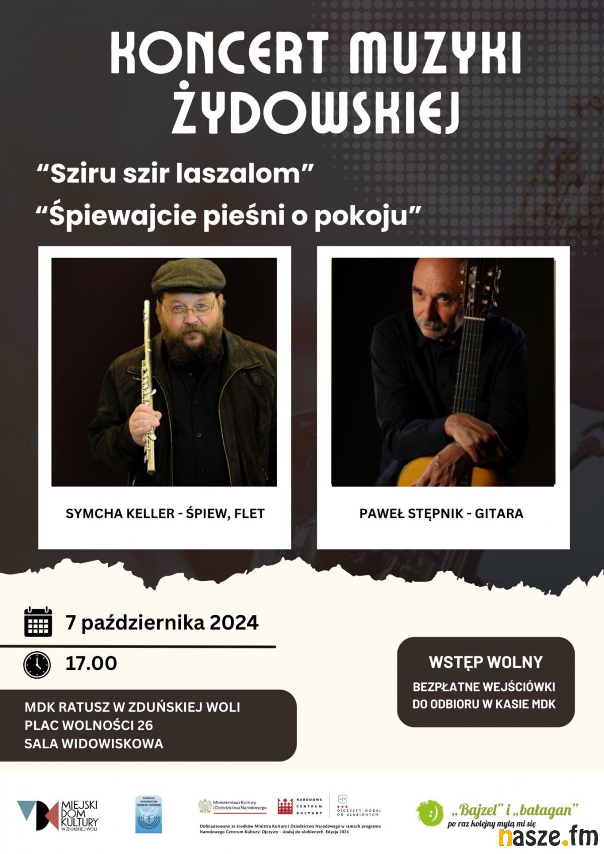 O godz. 17.00 w sali widowiskowej MDK odbędzie się koncert muzyki żydowskiej Sziru szir laszalom, czyli Śpiewajcie pieśni o pokoju. Wystąpi wokalista Symcha Keller. Przy akompaniamencie gitary (zagra Paweł Stępnik). Artyści zaprezentują mistyczną muzykę chasydów polskich również we współczesnych aranżacjach. Pieśni będą przeplatane wciągającą opowieścią o życiu i języku Żydów środkowej Polski.