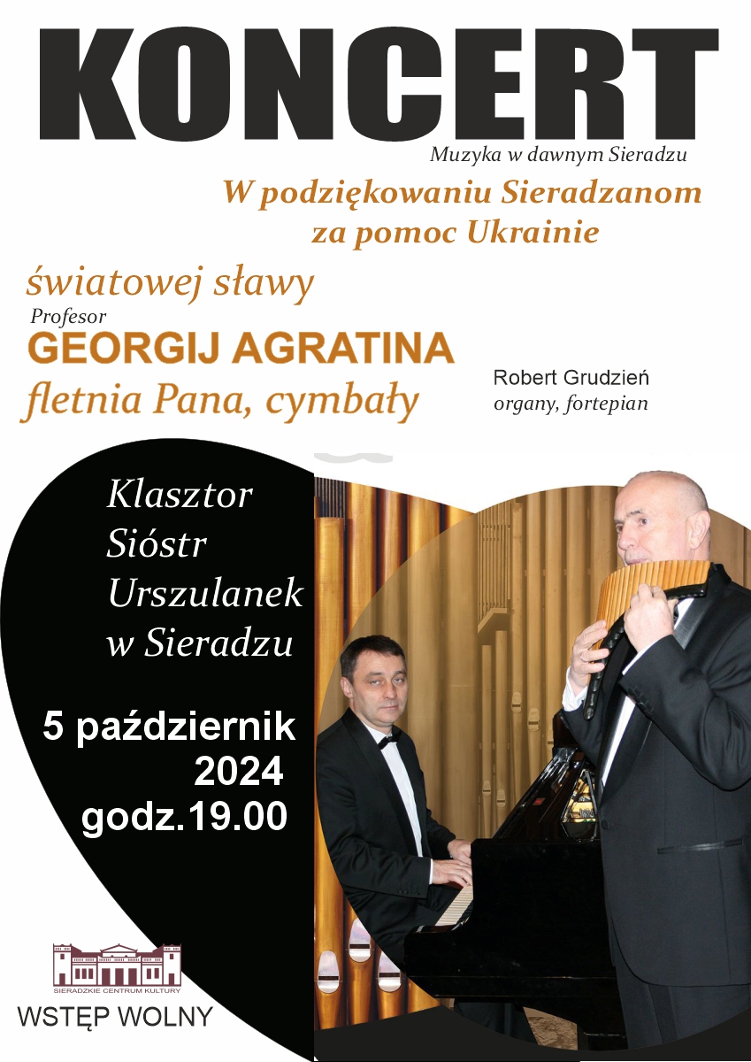 W sobotę placówka zaprasza na koncert do Klasztoru Sióstr Urszulanek. Koncert jest zatytułowany "W podziękowaniu Sieradzanom za pomoc Ukrainie" . Początek o godz. 19:00, a wystąpią dwaj wirtuozi: