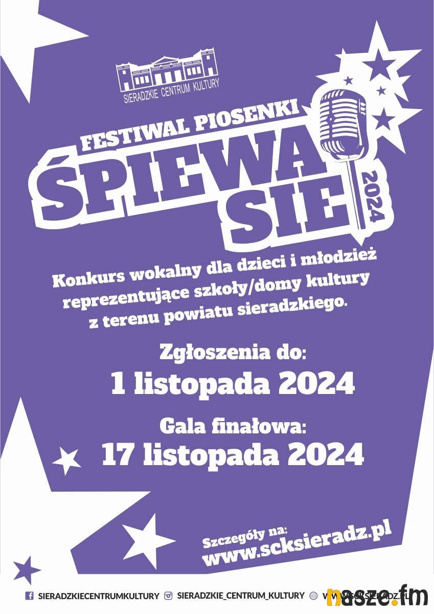 Sieradzkie Centrum Kultury kolejny raz zaprasza do udziału w konkursie wokalnym dla dzieci i młodzieży reprezentujących szkoły/domy kultury z terenu powiatu sieradzkiego. Zgłaszać można się do 1 listopada, a gala finałowa odbędzie się 17 listopada.