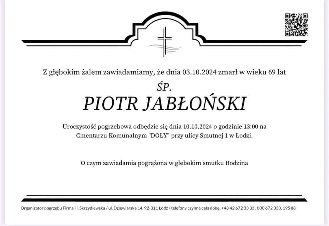 Jutro w Łodzi odbędzie się pogrzeb Piotra Jabłońskiego