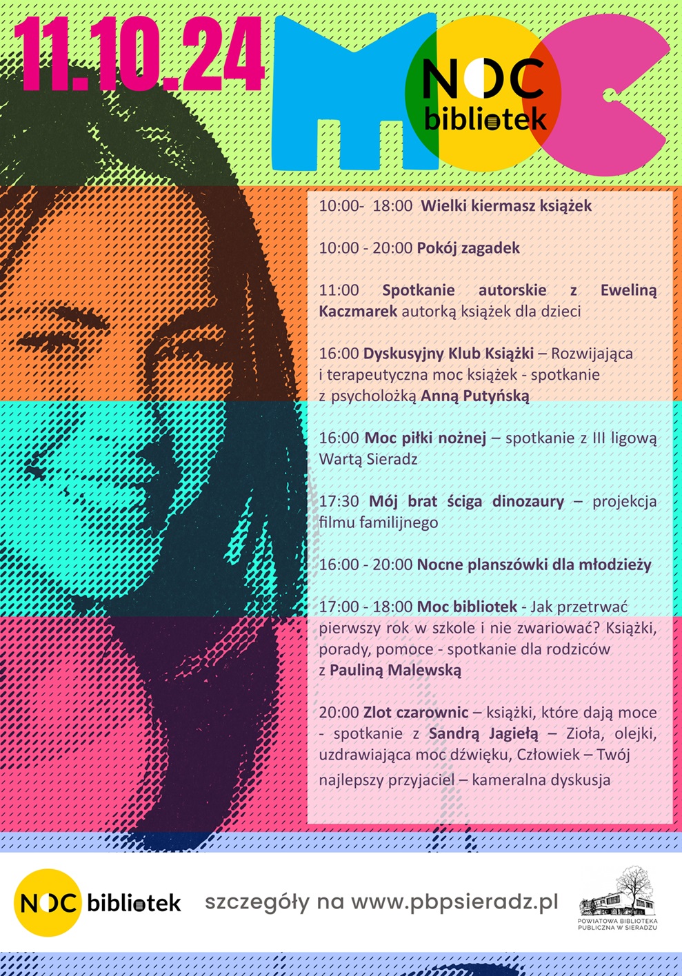 Hasło tegorocznej akcji to "Moc bibliotek" (Noc Bibliotek - Noc czytania - Moc czytania - Moc Bibliotek !). Tę ogólnopolską akcję Centrum Edukacji Obywatelskiej organizuje w tym roku po raz dziesiąty. W akcję zaplanowaną na piątek 11 października włącza się Powiatowa Biblioteka Publiczna w Sieradzu.