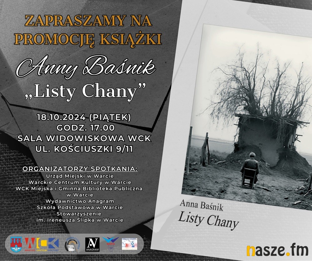 Książka jest unikatową, poetycką opowieścią o czasach wojny w mieście Warcie. Spotkanie poprowadzi prezeska Wydawnictwa „Anagram” Magdalena Koperska. Zapraszają: Urząd Miejski w Warcie, Warckie Centrum Kultury, Miejska i Gminna Biblioteka Publiczna w Warcie i Wydawnictwo „Anagram”. Organizacyjnie wspomagają także Stowarzyszenie im. Ireneusza Ślipka na rzecz dialogu polsko-żydowskiego i Szkoła Podstawowa im. S. Skarżyńskiego w Warcie. Po spotkaniu będzie można porozmawiać z autorką i uzyskać dedykację.