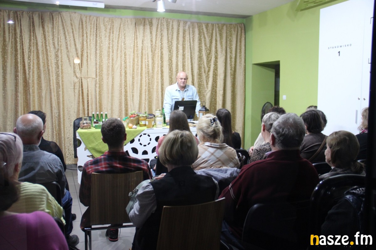Spotkanie przyciągnęło wielu zainteresowanych, którzy po wykładzie mogli także nabyć miody, syropy i inne produkty pochodzące z "Pasieki na źródłach", gdzie Katarzyna i Cezary działają na co dzień.