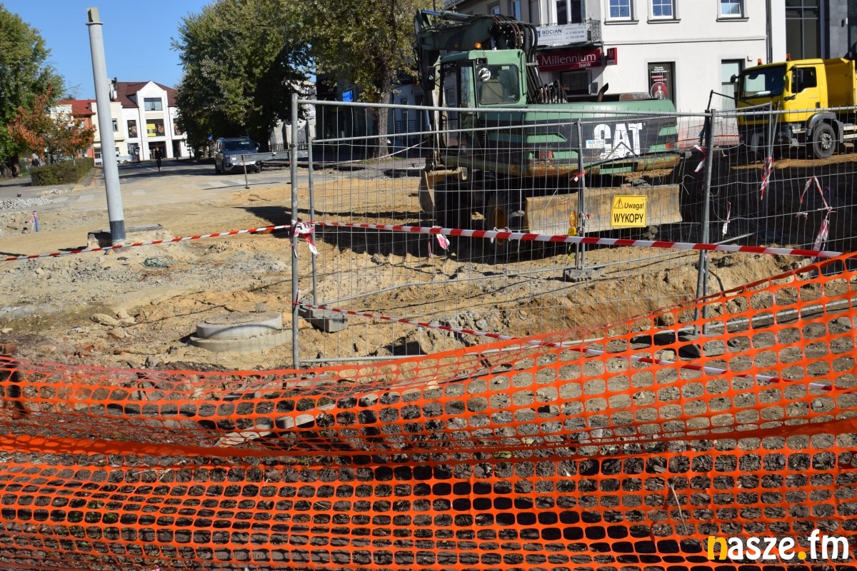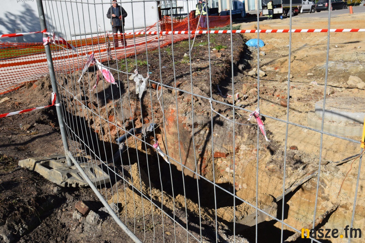 Na placu Wolności trwa przebudowa skrzyżowania z ulicą Łaską i Kościelną na rondo. Podczas prac ziemnych przy przełożeniu wodociągu natrafiono na fragment ceglanego muru. Stanowisko jest już po wstępnych oględzinach archeologa. Najprawdopodobniej to pozostałości budowli z XIX wieku.