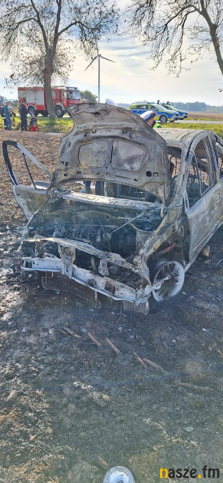 Dziś w miejscowości Brzozowiec (gmina Błaszki) samochód osobowy wypadł z drogi i się zapalił. Dwie osoby są poszkodowane.