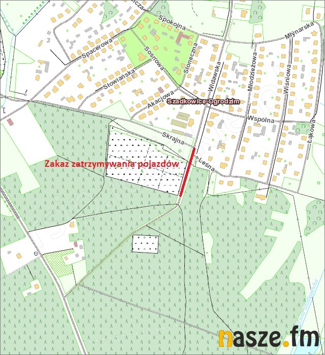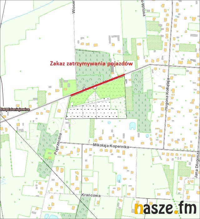 - ul. Świerkowa - zakaz zatrzymywania po obu stronach ulicy na odcinku od ul. Łaskiej do cmentarza.
