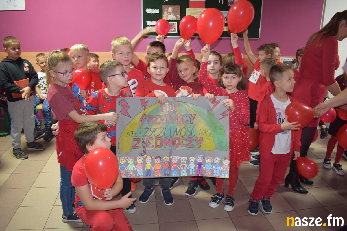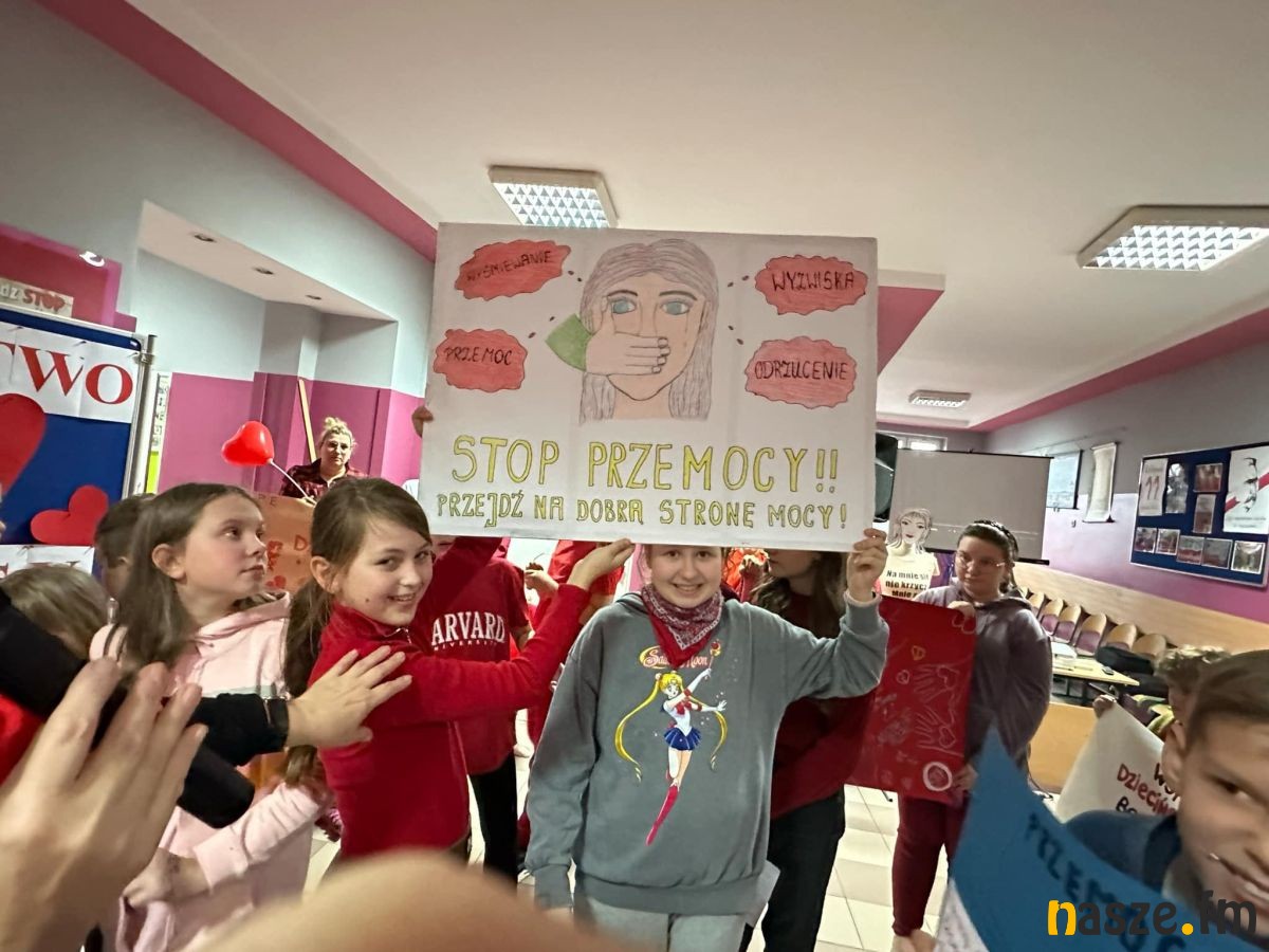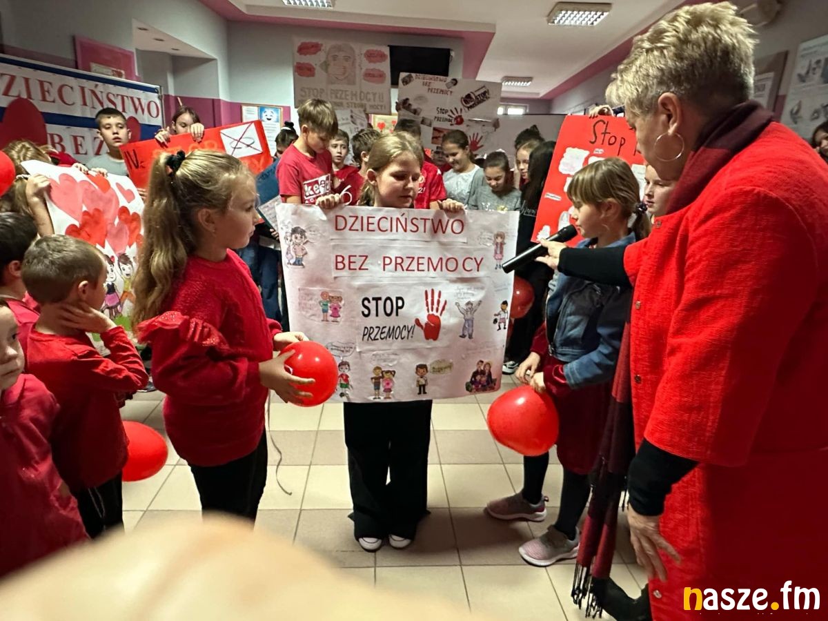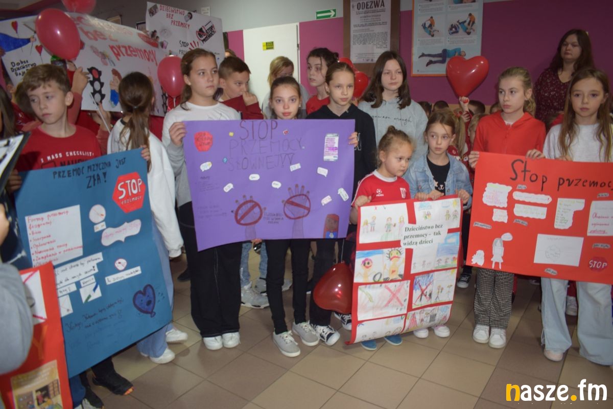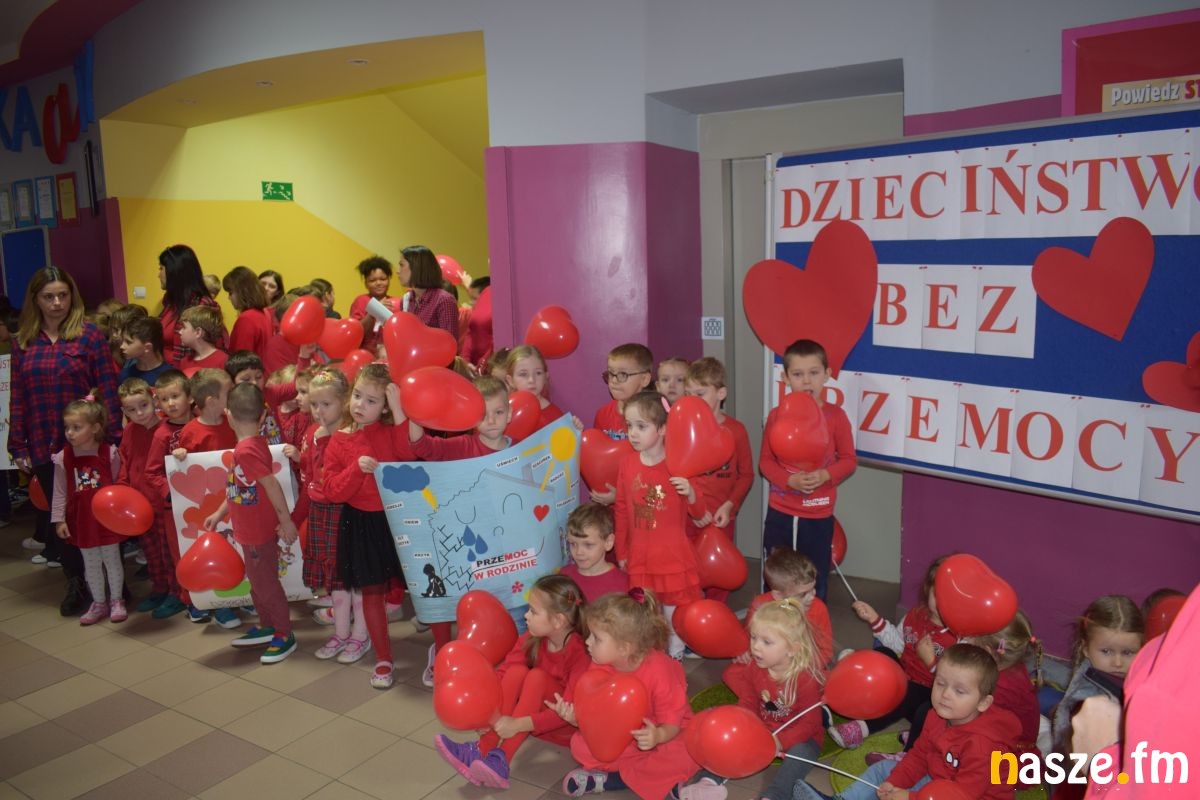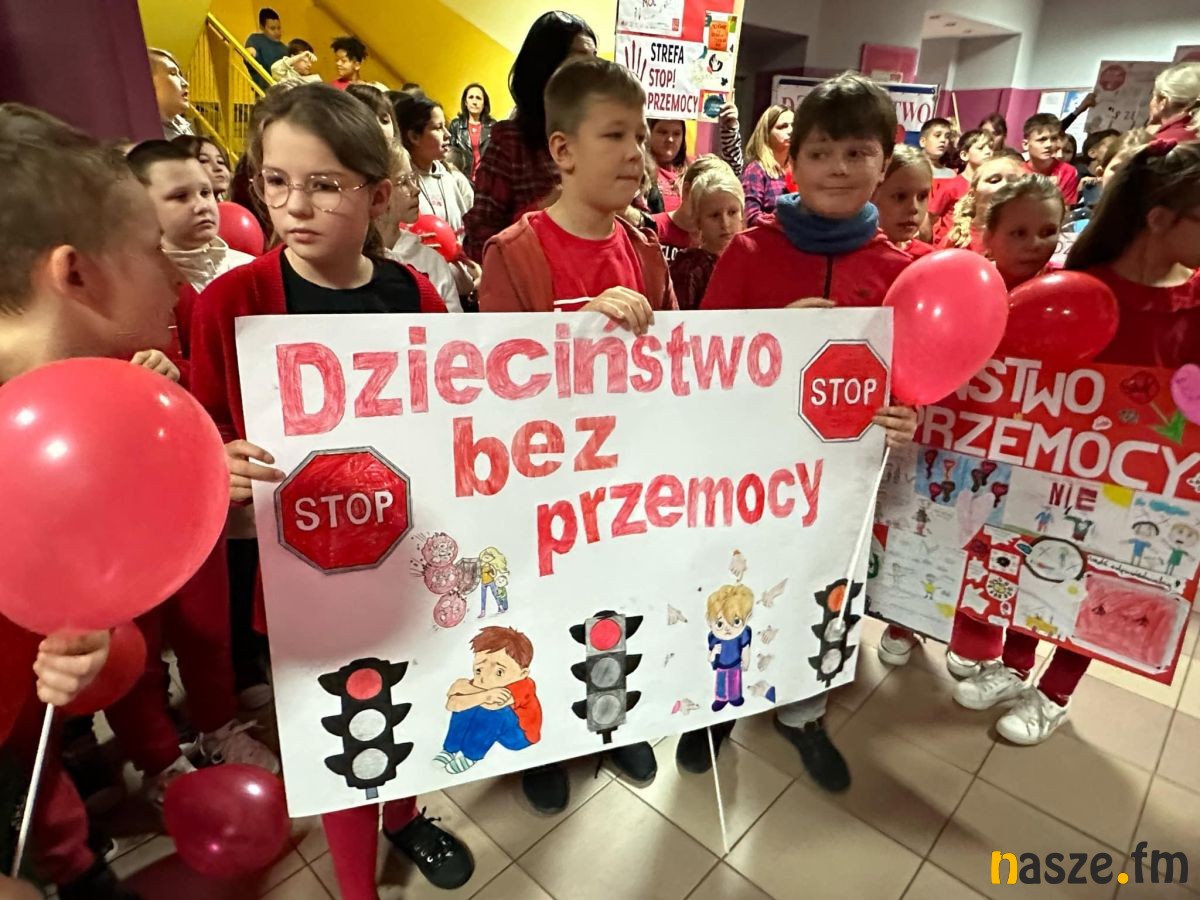 Cała społeczność szkolna uczestniczyła w szkolnym happeningu, w trakcie którego został głośno zadeklarowany sprzeciw wobec krzywdzenia dzieci i stosowania wobec nich przemocy, zaniedbania ze strony dorosłych oraz rówieśników.