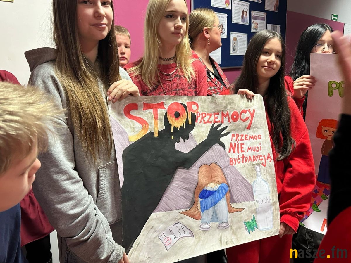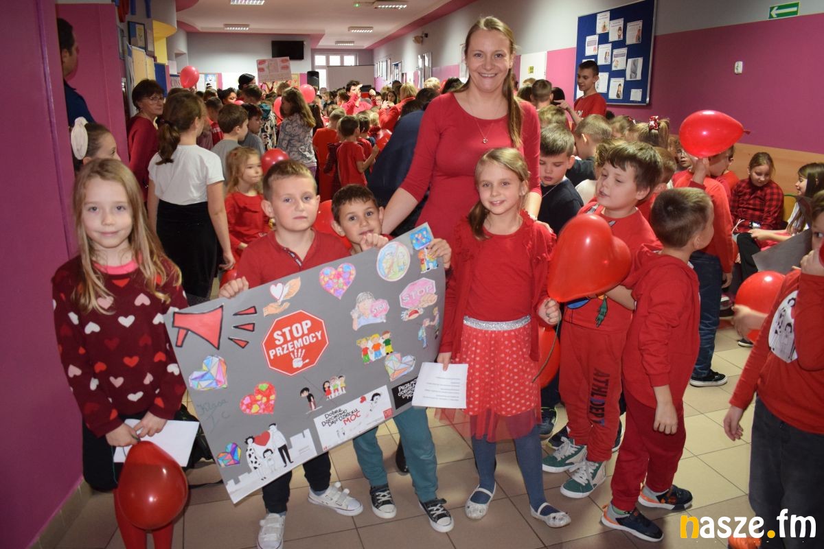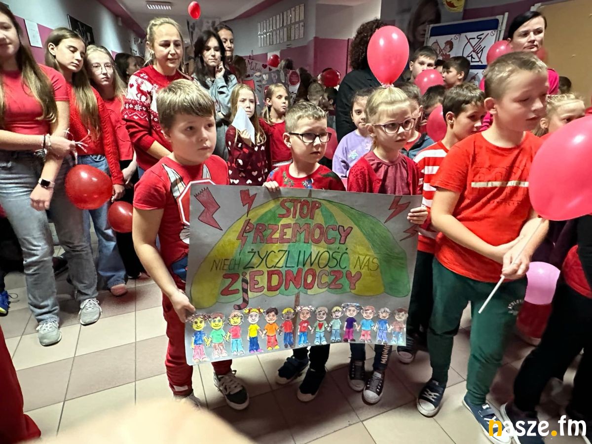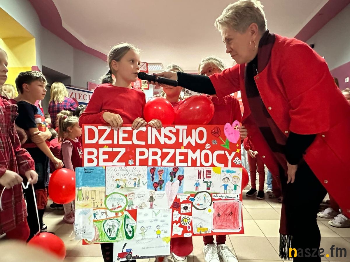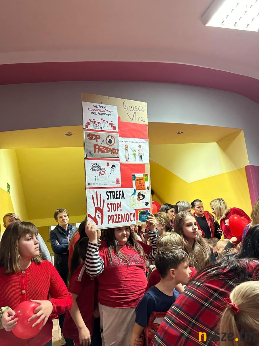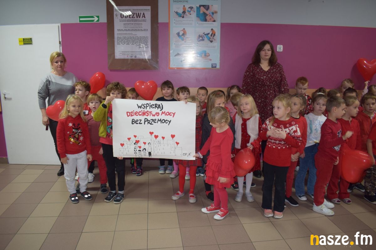 Cała społeczność szkolna uczestniczyła w szkolnym happeningu, w trakcie którego został głośno zadeklarowany sprzeciw wobec krzywdzenia dzieci i stosowania wobec nich przemocy, zaniedbania ze strony dorosłych oraz rówieśników.