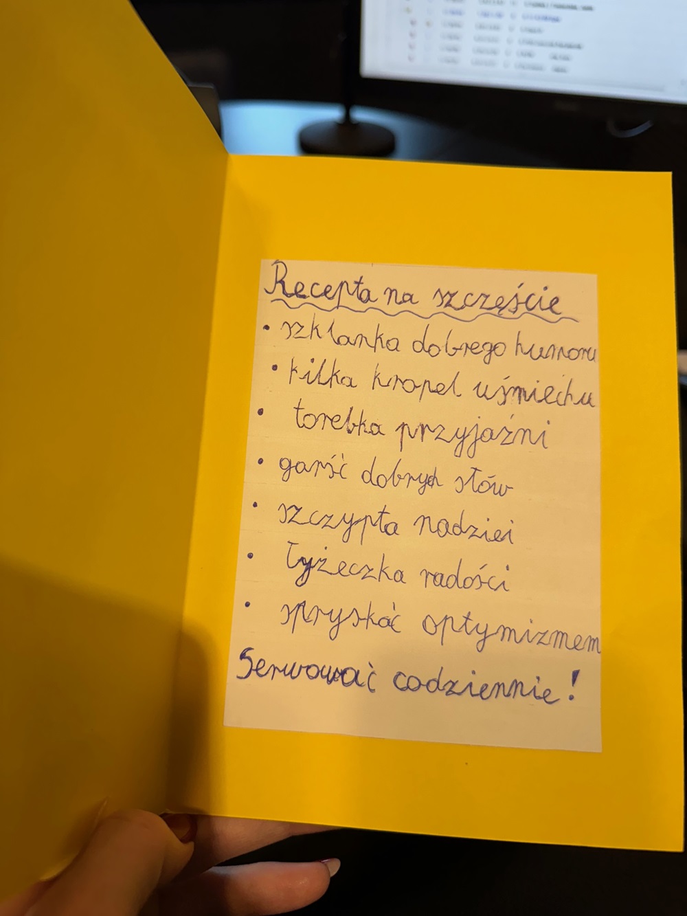 Na początek odwiedzili nas uczniowie ze Szkoły Podstawowej nr 10 w Sieradzu. Dostaliśmy piękną kartkę z receptą na szczęście. Młodzież na antenie przekazała też kilka dobrych, miłych słów: