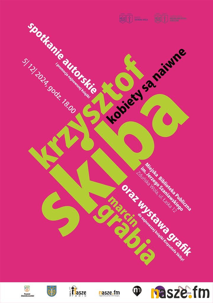 Podczas spotkania Krzysztof Skiba będzie promował najnowszy tom opowiadań satyrycznych pt. "Kobiety są naiwne" (wydawca Rock Revolution), który ukazał się w listopadzie 2024 r. Są to historie prawdziwe i nieprawdziwe, bywa, że straszne, pouczające i śmieszne, ale zawsze otulone kąśliwą satyrą i specyficznym, absurdalnym poczuciem humoru. Wydarzeniu będzie towarzyszyć wystawa grafik Marcina Grabi do wspomnianej książki.