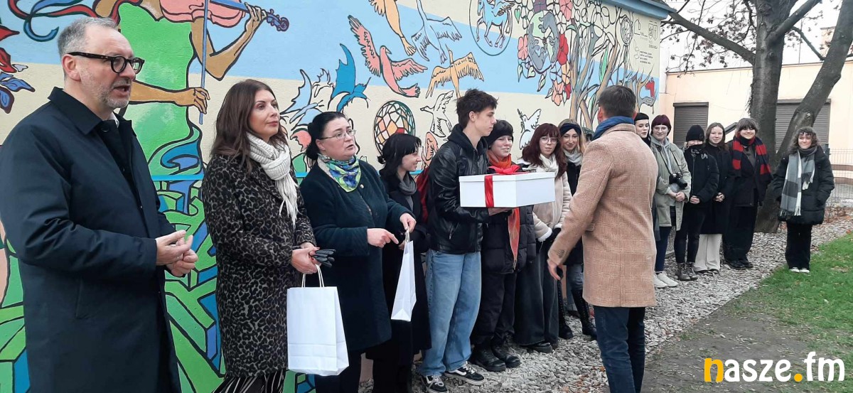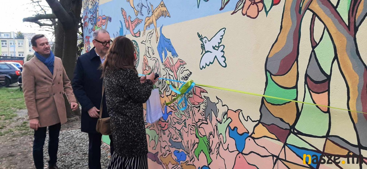 - Młodzież bardzo chętnie się zainteresowała. Oczywiście pogoda ostatnimi dniami płatała nam figle. Była na tyle kapryśna, że powiem dyplomatycznie - wiosną wszystko rozkwita, wiosną będą nowe przypływy energii. Skoro pogoda nam tak płatała figle, to obecny mural zakwitnie jakby na nowo, czyli wiosną młodzi artyści dopiszą dyskretny ciąg dalszy w postaci malutkich akcentów, a skrzypaczka, która tutaj widnieje, będzie mogła zagrać swoistą muzykę fantazyjnego ogrodu sztuk pięknych - powiedziała podczas oficjalnego odsłonięcia muralu Marzena Sroczyńska-Gudajczyk ze zduńskowolskiego "plastyka".