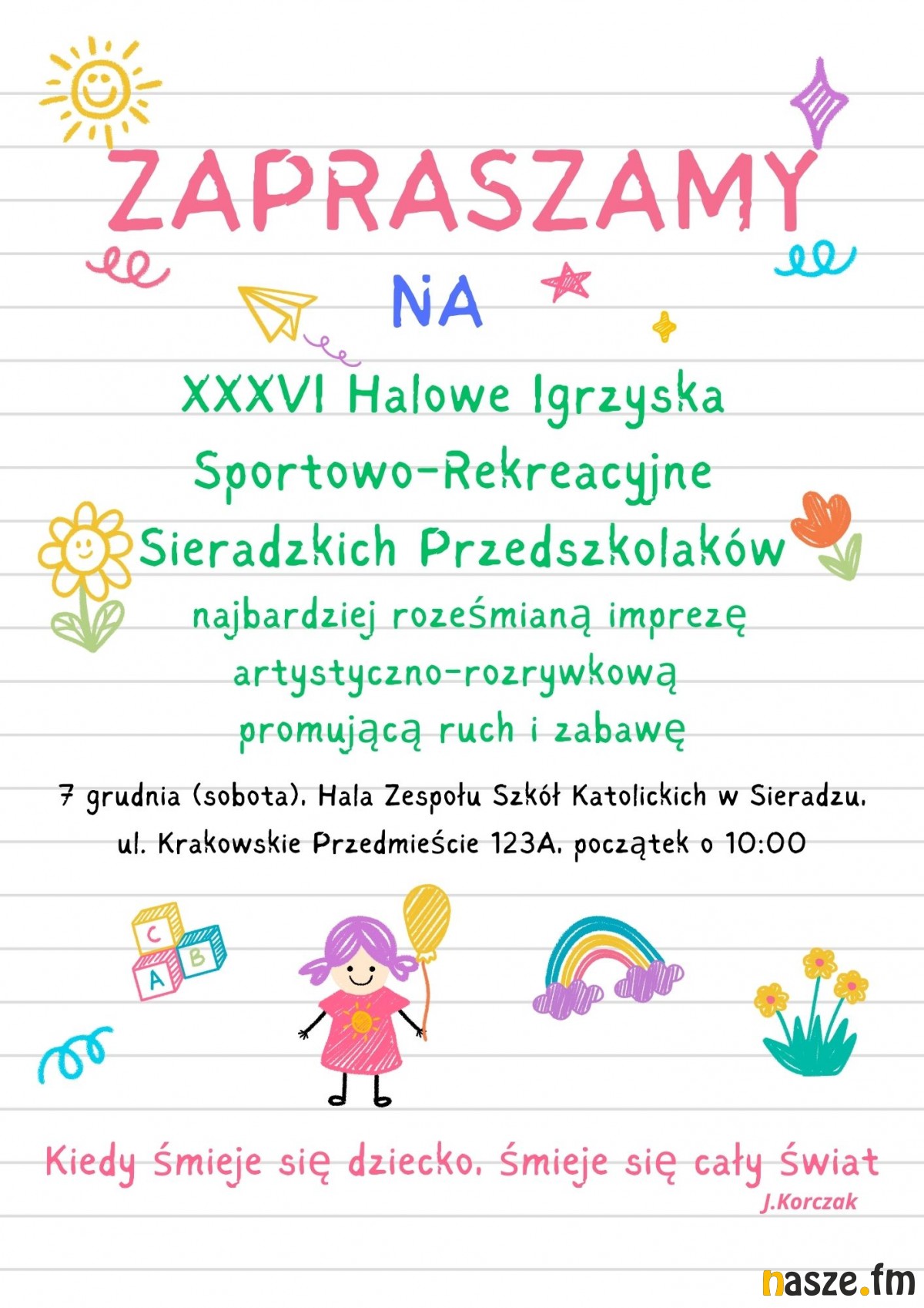 Jutro w hali Zespołu Szkół Katolickich w Sieradzu odbędą się XXXVI Halowe Igrzyska Sportowo-Rekreacyjne Sieradzkich Przedszkolaków. Start imprezy o godzinie 10:00.