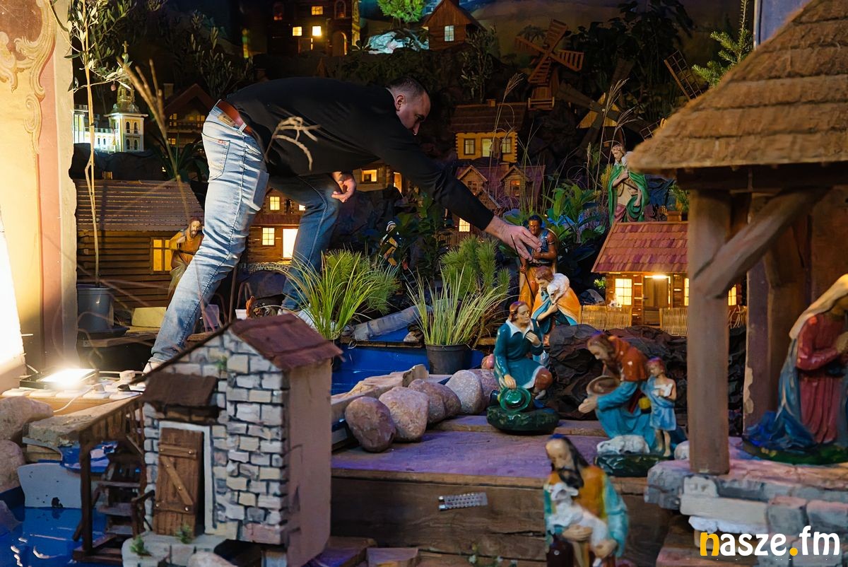 - Montaż szopki rozpoczęliśmy się pod koniec listopada. Pracuje przy niej 10 osób, nie tylko dorośli, ale i dzieci - mówi Krzysztof Klimaszewski, angażujący się w budowę szopki od kilkudziesięciu lat. - Z każdym rokiem coraz bardziej ją rozbudowujemy, zmieniamy. Mamy też coraz więcej pomysłów. Byłoby nudno, gdyby wyglądała zawsze tak samo, dlatego dokładamy nowe elementy. Największe wrażenie robią ruchome elementy. Mamy mostów domków, wiatraków, fontannę, mamy tez replikę kościoła ojców bernardynów - dodaje.