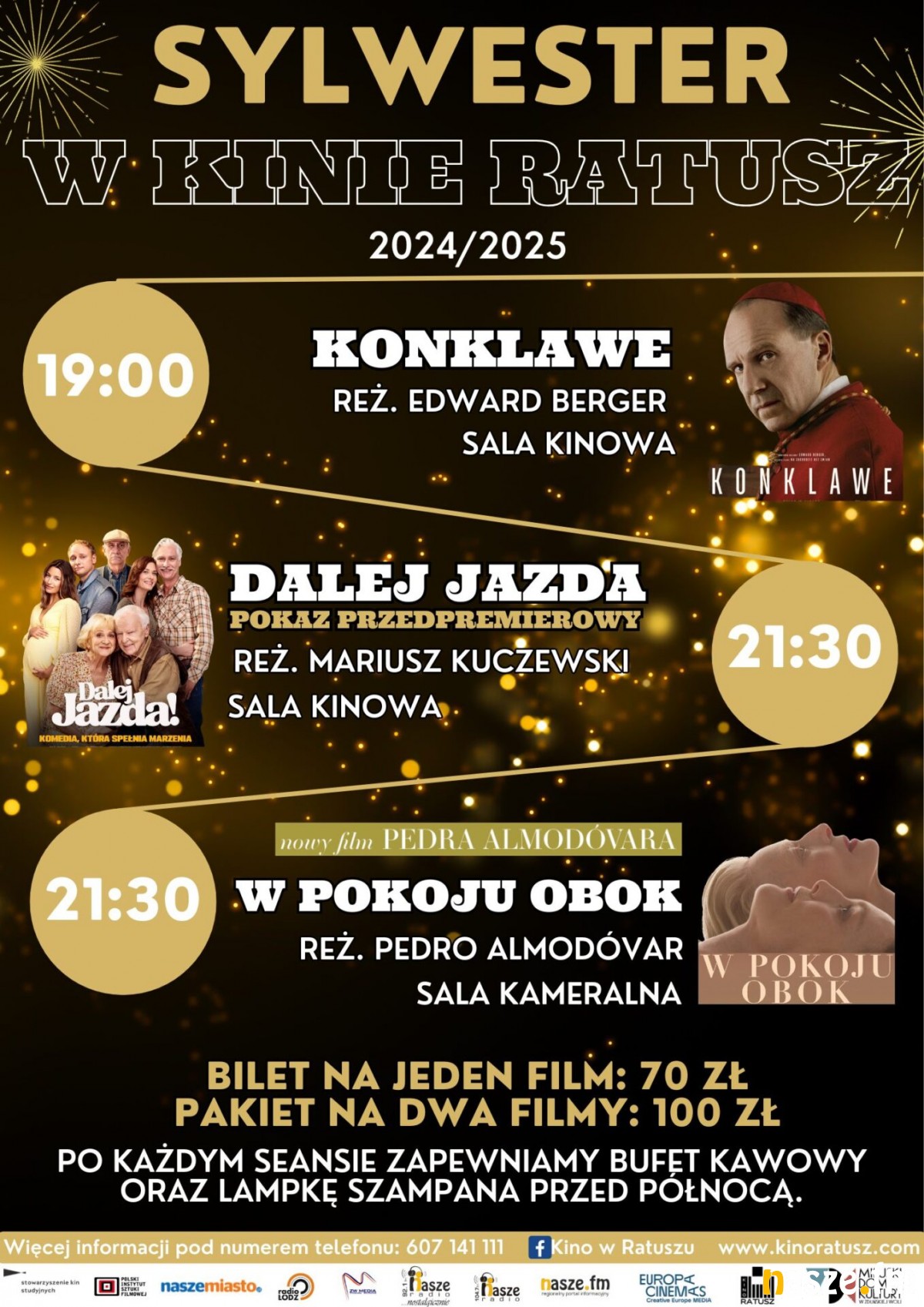 Nowy Rok można powitać w kinie w Ratuszu w Zduńskiej Woli. Oprócz różnorodnego repertuaru, po każdym seansie słodki bufet kawowy, a o północy lampka szampana. Będą też konkursy z nagrodami.