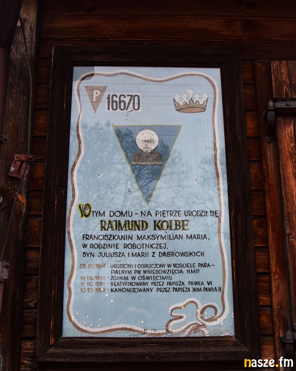 Maksymilian Kolbe urodził się 8 stycznia 1894 w Zduńskiej Woli. Także 8 stycznia 1894 został ochrzczony w kościele Wniebowzięcia Najświętszej Maryi Panny w Zduńskiej Woli, jako Rajmund Kolbe. Świętym został ogłoszony 10 października 1982 roku przez papieża św. Jana Pawła II, jako męczennik kościoła katolickiego. Beatyfikacja odbyła się 17 października 1971 w Rzymie.
